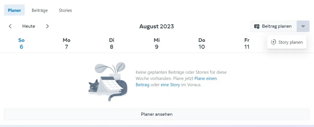 Mit der Meta Business Suite kannst du auch Stories planen und erhältst eine Kalenderübersicht. Darüber hinaus ist es ein zentrales Tool für die Planung sowohl für Instagram als auch für Facebook.