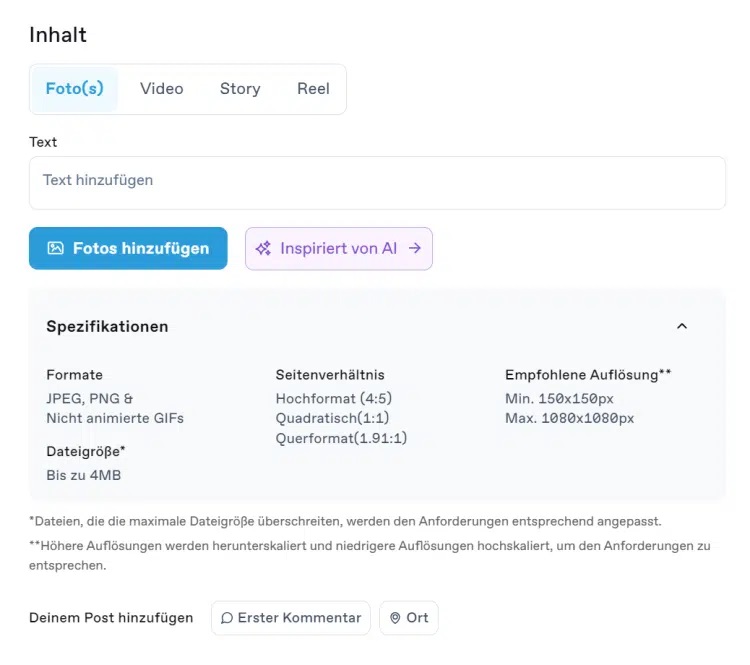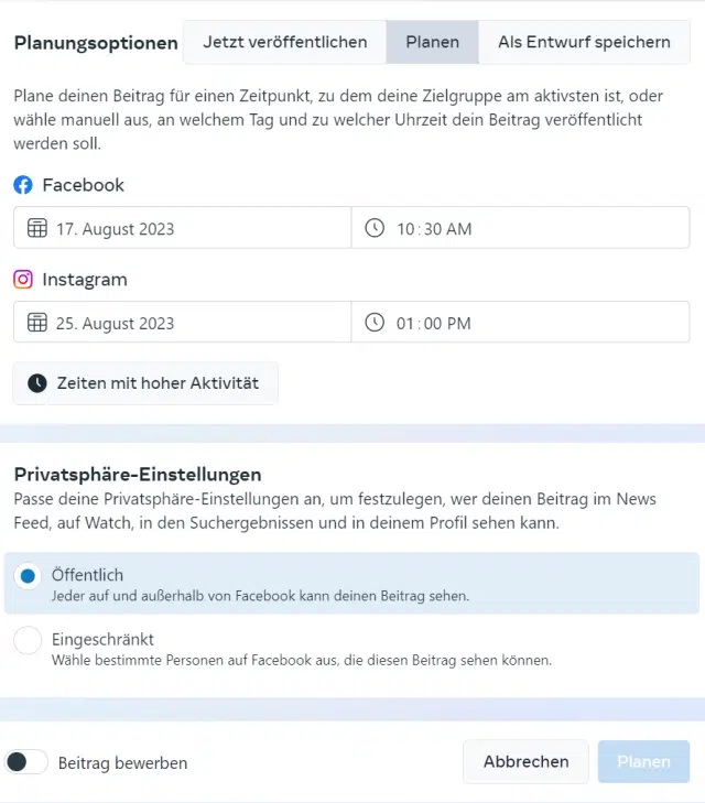 Die Instagram-App selbst bietet eine grundlegende Funktion zur Planung von Beiträgen. Allerdings ist diese Funktion nur für Business-Konten verfügbar und beschränkt sich auf Beiträge und Reels.