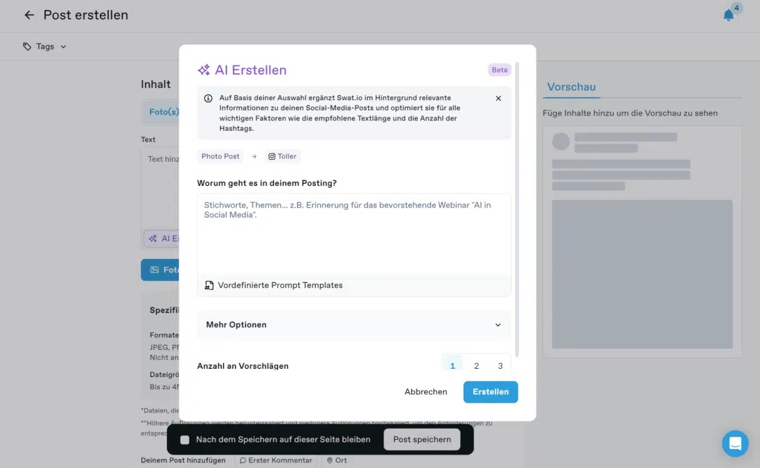 Tools wie swat.io bieten ein umfassendes Social Media Management. Sie sind zwar kostenpflichtig, bieten aber viele zusätzliche Features, einschließlich der Möglichkeit, Freigabeprozesse einzurichten.
