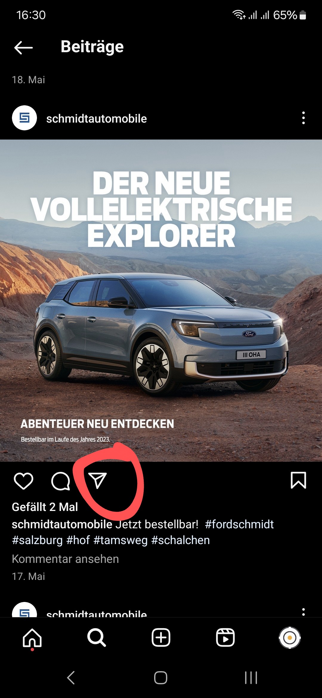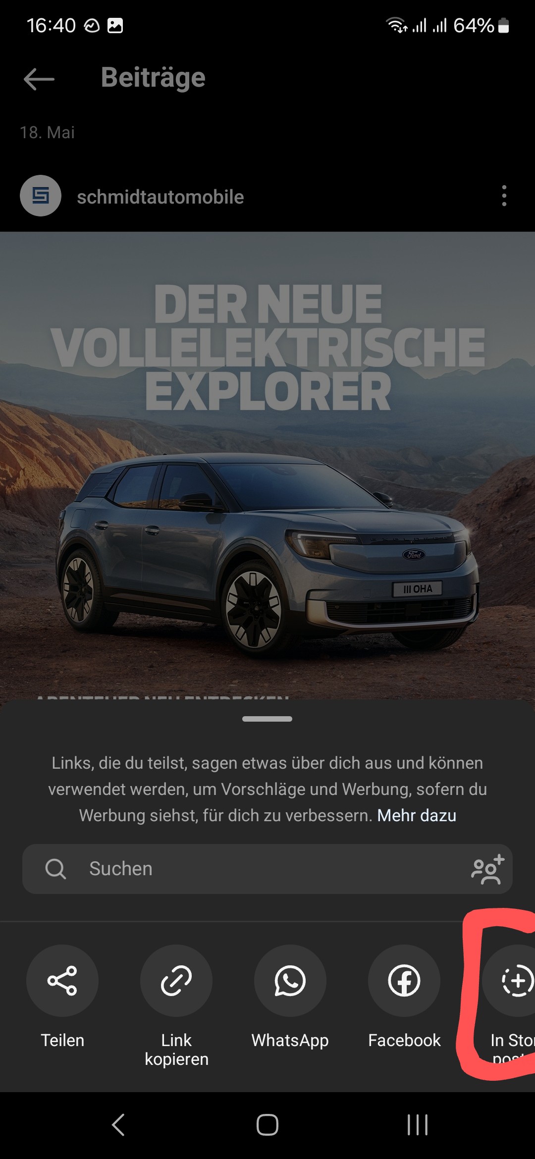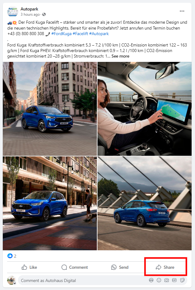 Hier ein Beispiel, wie man einen Beitrag über das Handy teilen kann: