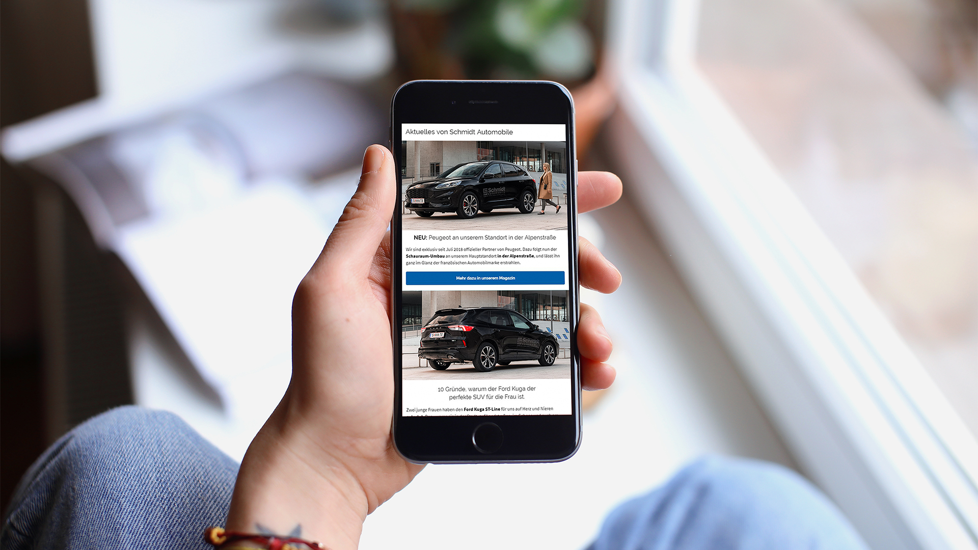 Verschicke regelmäßig Newsletter, um beim Kunden immer präsent zu sein! E-Mail Marketing ist ein sehr hilfreiches Marketing Tool im Autohaus, um mit deinen Kunden in Kontakt zu bleiben. Denn der abgeschlossene Autokauf muss nicht immer das Ende der Car-Buyers-Journey sein.